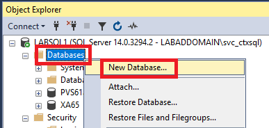 Still in the SQL Server Management Studio, expand and right-click Databases, and click New Database…, as shown in Figure 5.