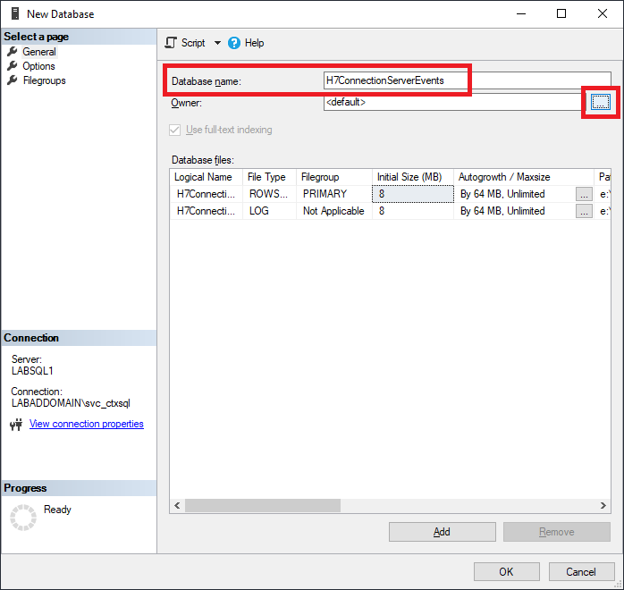 Enter a Database name and click the browse button to the far right of Owner, as shown in Figure 6.