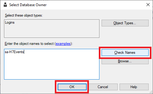 Enter the SQL account name, click Check Names and click OK, as shown in Figure 7.