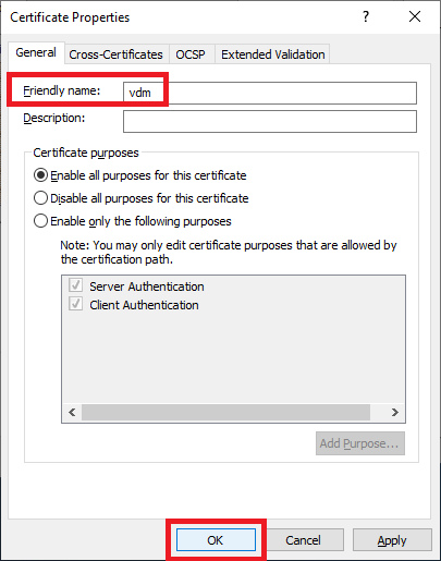 Type in vdm (all lower case) for the Friendly name, as shown in Figure 14, and click OK twice.