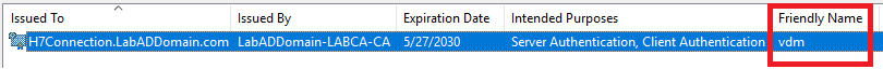 There would have been six certificates if we had not changed the Friendly Name of the domain’s server certificate. If we use the self-signed certificate, any HTTPS connection made to the Connection Server would be untrusted.