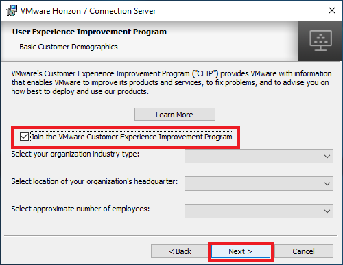 Select whether to Join the VMware Customer Experience Improvement Program and click Next, as shown in Figure 24.