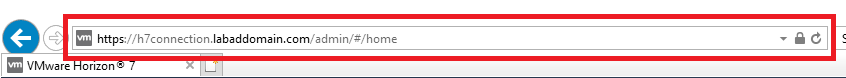 I prefer to browse the FQDN of the server. For example, https://ConnectionServer.domain.com/admin/. For me, that is https://h7connection.labaddomain.com/admin/, as shown in Figure 30.