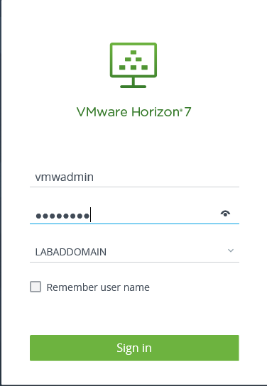 Enter the initial Horizon 7 Administrator account configured during the installation and click Sign in, as shown in Figure 32.