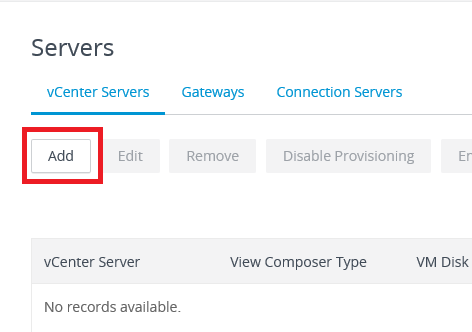 Under vCenter Servers, click the Add button, as shown in Figure 38.