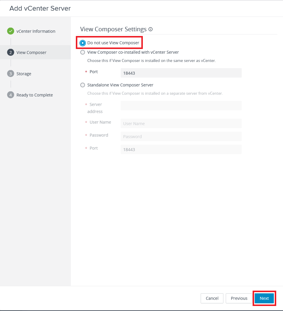 We only use Instant Clones for this lab, not Linked Clones, so make sure Do not use View Composer is selected and click Next, as shown in Figure 42.