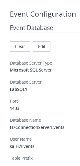 Note: From back in Figure 4, if you did not deselect Enforce password policy and the password for the account changes, this is where the password is updated. So, it isn’t much effort to allow the account’s password to change and then update the Event database details for the Connection Server.