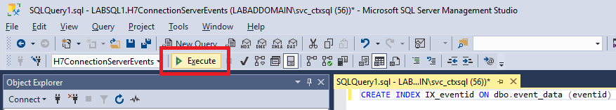 Leave the SQL Server Management Studio open. It is needed later to add a missing index to the database just created. We can’t add the index until the Connection Server connects to the database.