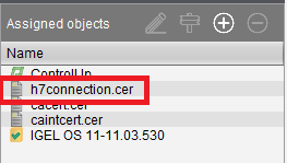 In the left frame, click on the Connection Server’s certificate file, and in the right frame, click the “+” by Assigned objects, as shown in Figure 77.