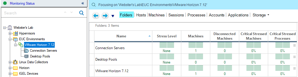 Figure 83 shows the Horizon environment added to the ControlUp console.